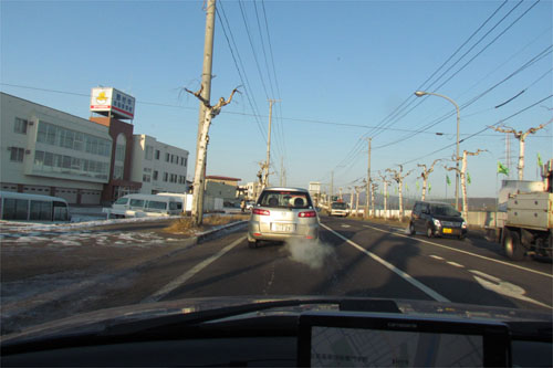 午前7時50分、南岸通り、野付牛自動車学校前から無加川町方向