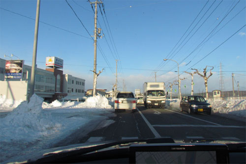 午前7時50分、南岸通り、野付牛自動車学校前から無加川町方向