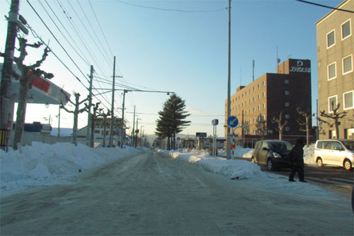 午前7時50分、北4条通りの国道39号交差点から緑園通り方向