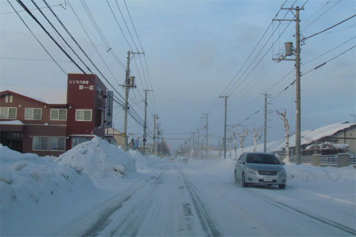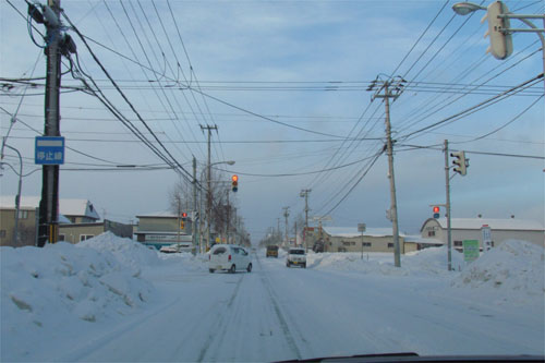 午前7時50分、南岸通り、野付牛自動車学校前から無加川町方向