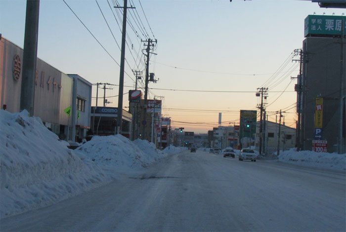 とん田通り、国道39号交差点から奥は常呂方面