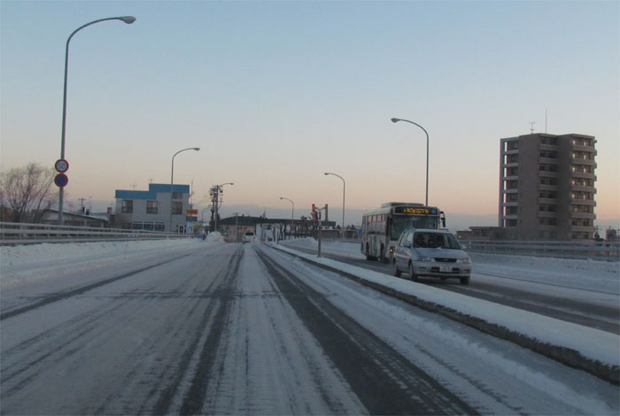 写真奥が野付牛自動車学校方向