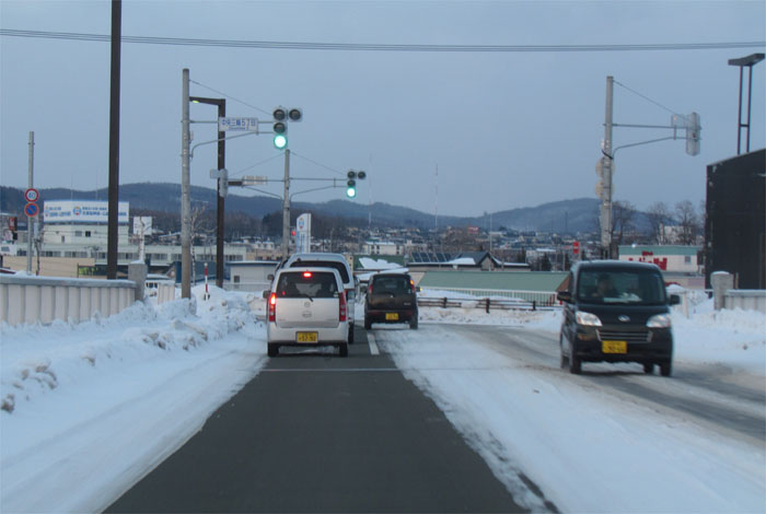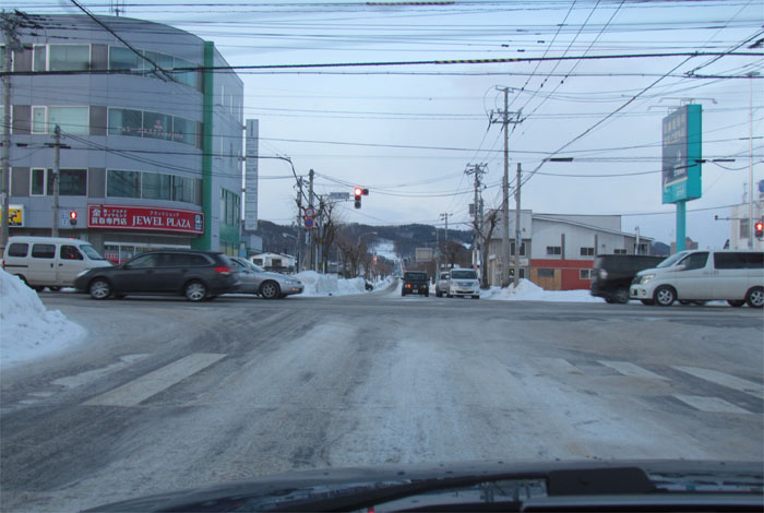 西6号線、国道39号交差点から奥は若葉の夕陽ヶ丘通り方向
