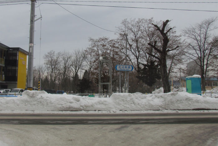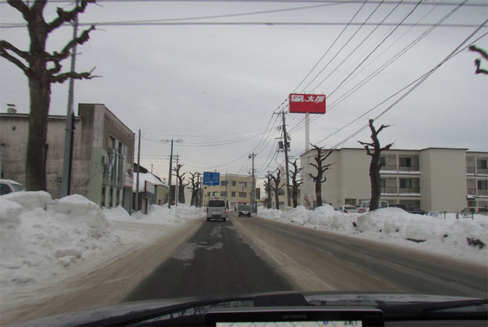 午前7時40分、松浦水産駐車場裏の通りを北3条通り側から北4条通り方向