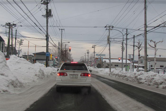午前7時50分、南岸通り、野付牛自動車学校前から無加川町方向