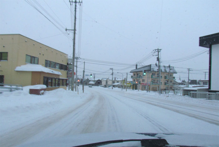 末広町の南岸通り、セイコーマート前から野付牛自動車学校方向