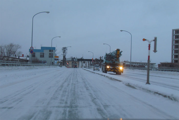 末広町の南岸通り、西4号線バス停前から野付牛自動車学校方向