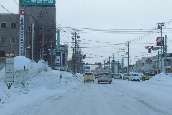 午前7時50分、北4条通りの国道39号交差点から緑園通り方向
