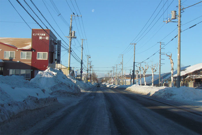 午前7時50分、南岸通り、野付牛自動車学校前から無加川町方向