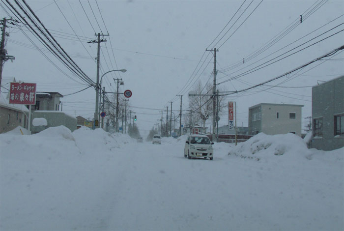 午前7時50分、南岸通り、野付牛自動車学校前から無加川町方向
