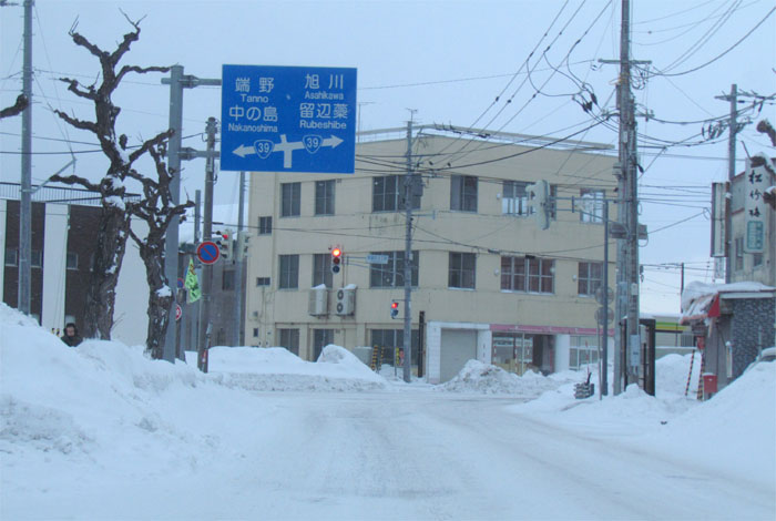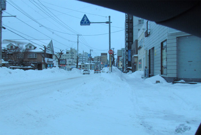 午前7時40分、北3条通り、西6丁目通り交差点手前