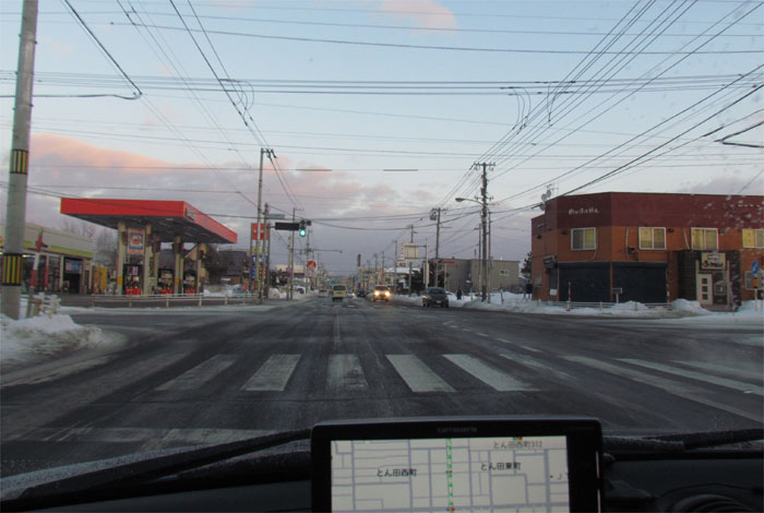 南岸通り、とん田通りの交差点から右は北光神社方向