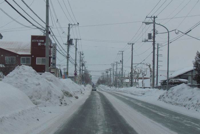 午前7時50分、南岸通り、野付牛自動車学校前から無加川町方向