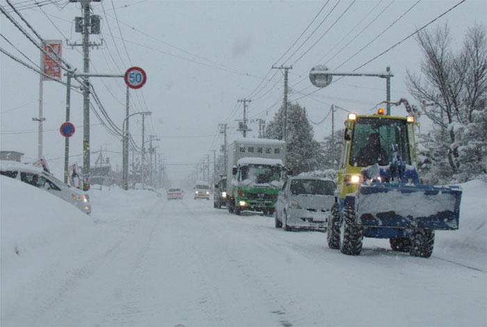 午前7時50分、南岸通り、野付牛自動車学校前から無加川町方向