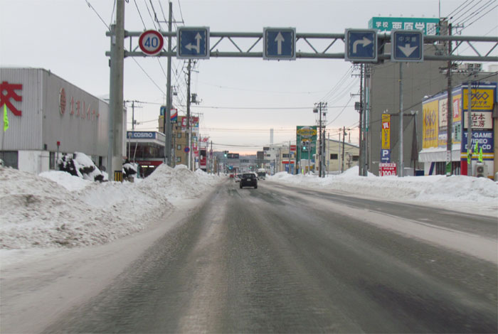南岸通り、とん田通りの交差点から右は北光神社方向
