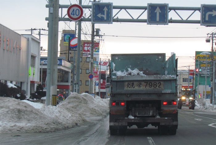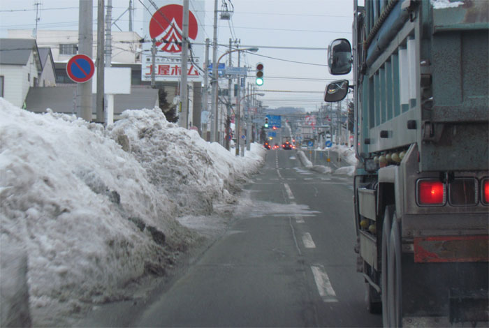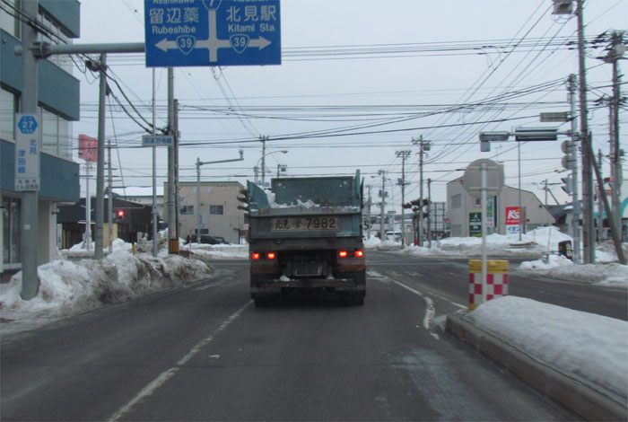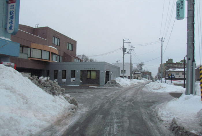 末広町の南岸通り、西4号線バス停前から野付牛自動車学校方向