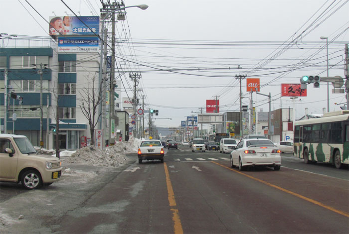 午前7時50分、北4条通りの国道39号交差点から緑園通り方向