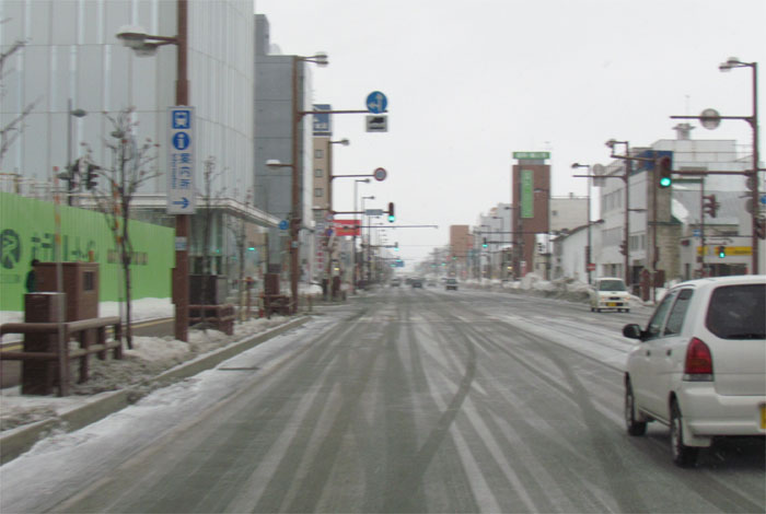 午後3時過ぎ、国道39号の五差路を背に北見駅方向