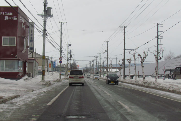 午前7時50分、南岸通り、野付牛自動車学校前から無加川町方向