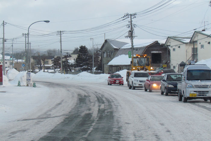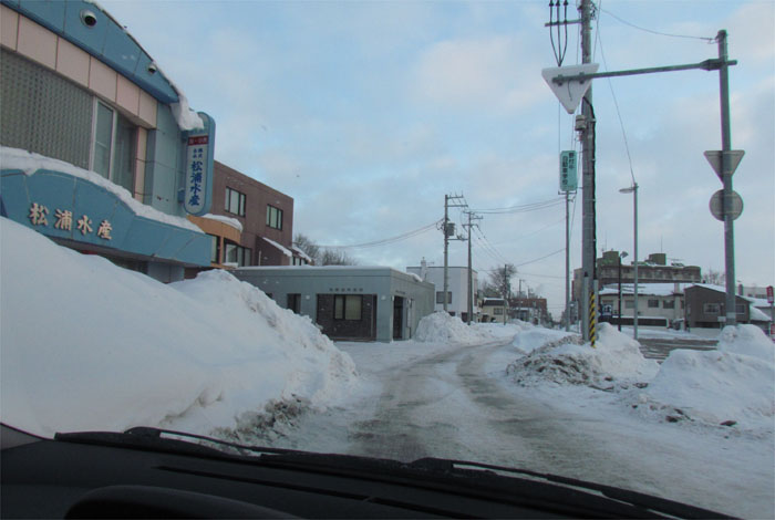 末広町の南岸通り、西4号線バス停前から野付牛自動車学校方向