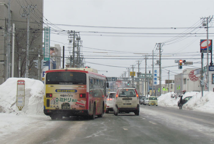 午前7時50分、北4条通りの国道39号交差点から緑園通り方向