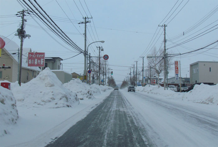 午前7時50分、南岸通り、野付牛自動車学校前から無加川町方向