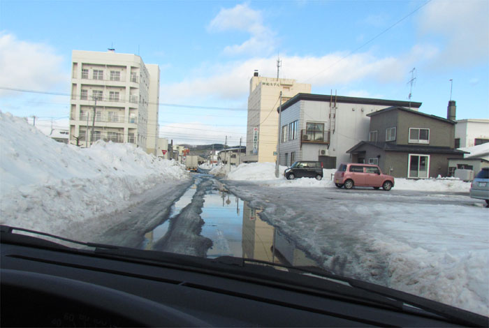 午前7時40分、北3条通りの河合旅館前、西6丁目通り交差点手前