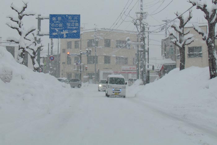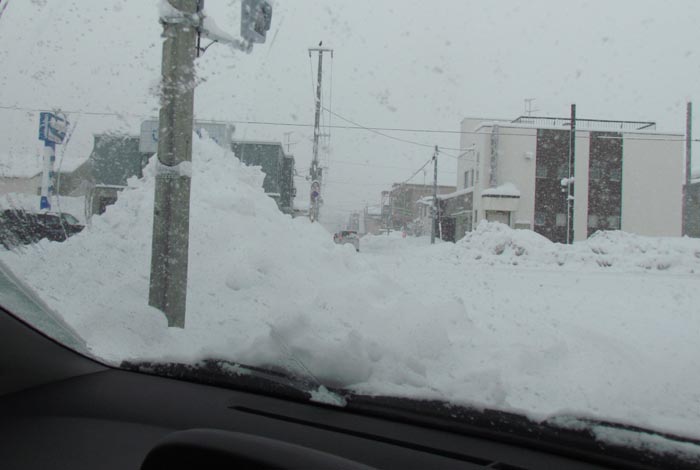 午前7時40分、北3条通り、西6丁目通り交差点手前