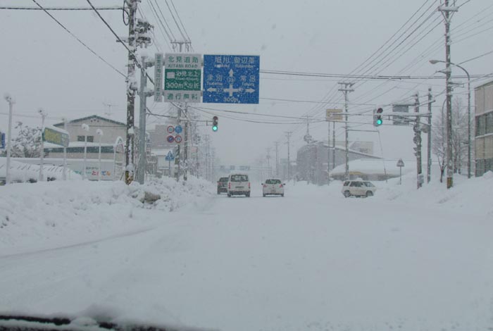 午前7時50分、北4条通りの国道39号交差点から緑園通り方向
