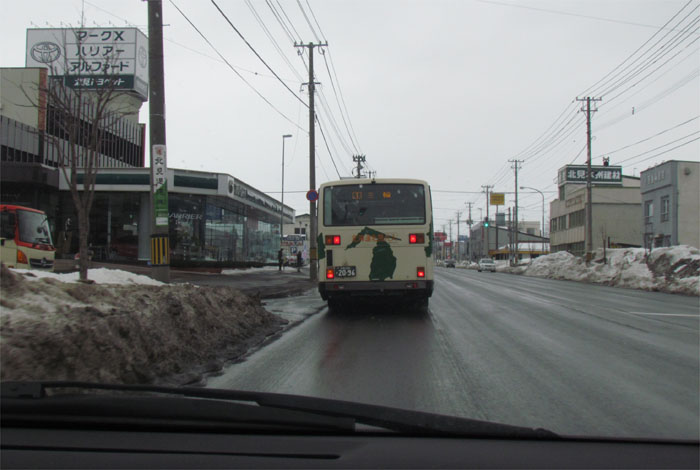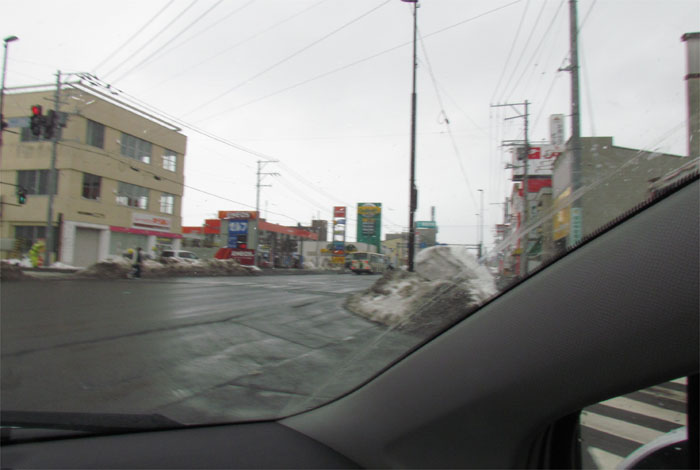 午前7時50分、北4条通りの国道39号交差点から緑園通り方向
