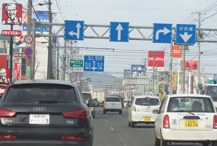 午前7時50分、北4条通りの国道39号交差点から緑園通り方向