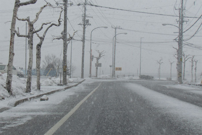 末広町の南岸通り、西4号線バス停前から野付牛自動車学校方向