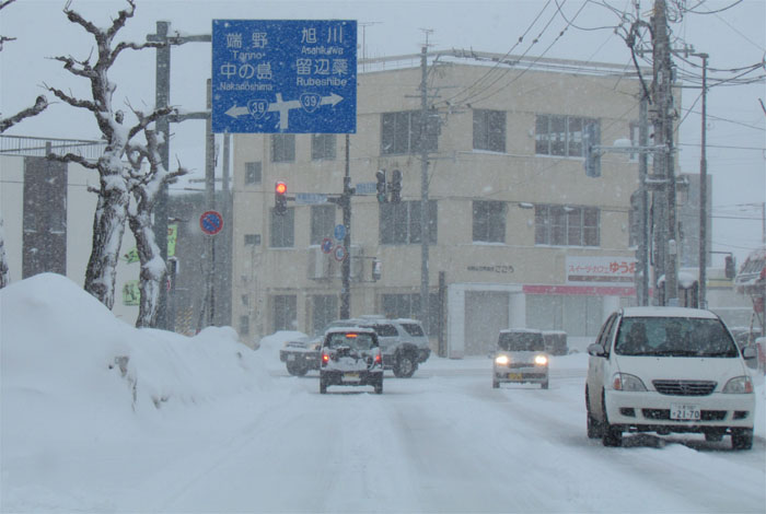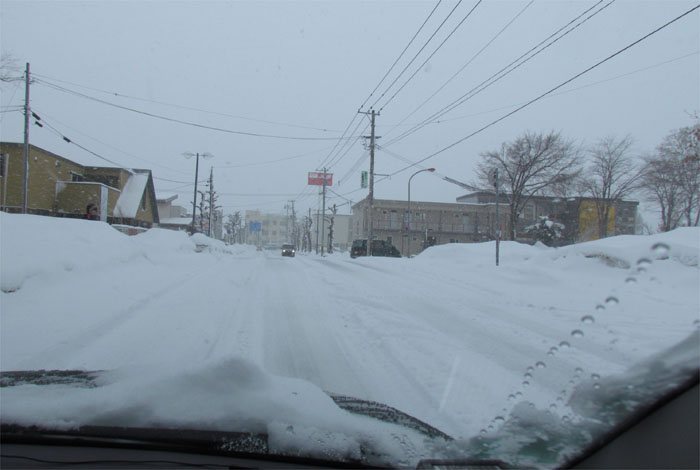 午前7時40分、北3条通り、西6丁目通り交差点手前