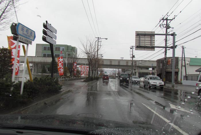 前方がJR石北本線高架橋、写真右が北見駅方向