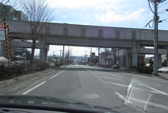 前方がJR石北本線高架橋、写真右が北見駅方向