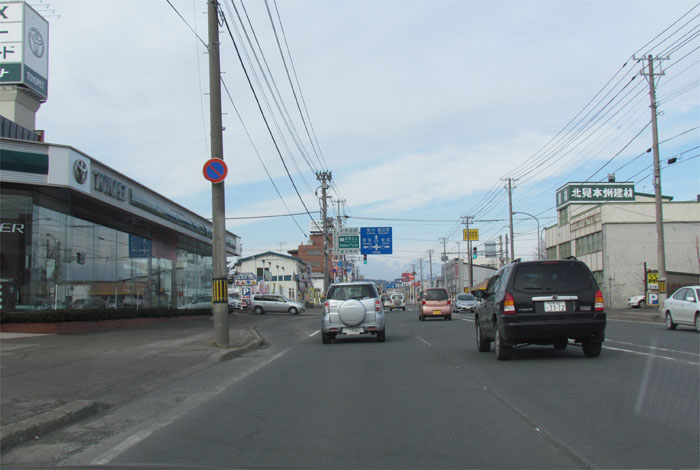 午前7時50分、北4条通りの国道39号交差点から緑園通り方向