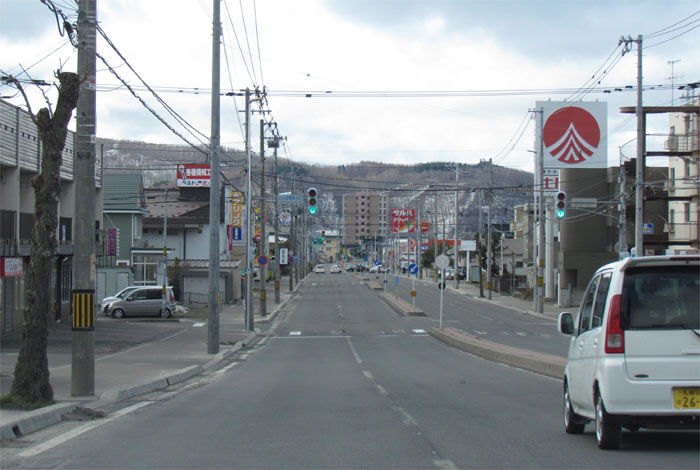 とん田通り、北見中央病院側から南大通り交差点方向