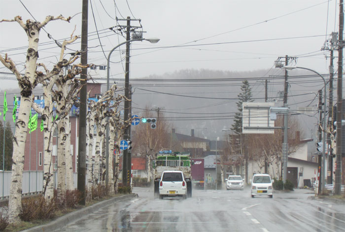 末広町の南岸通り、西4号線バス停前から野付牛自動車学校方向