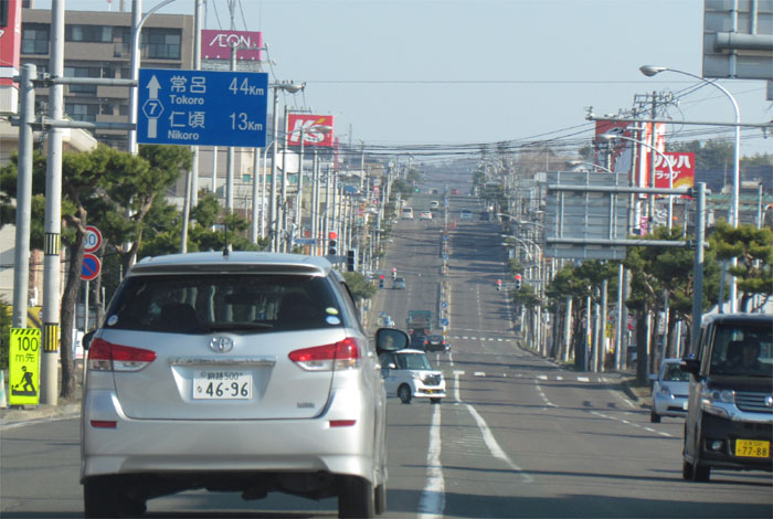 末広町の南岸通り、西4号線バス停前から野付牛自動車学校方向