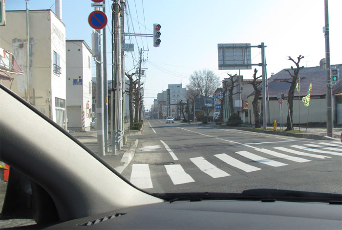 写真右が野付牛自動車学校方向