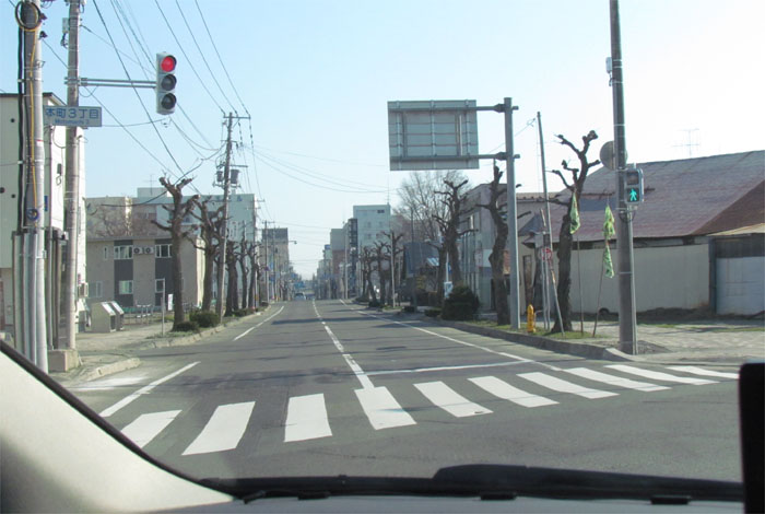 写真右が野付牛自動車学校方向