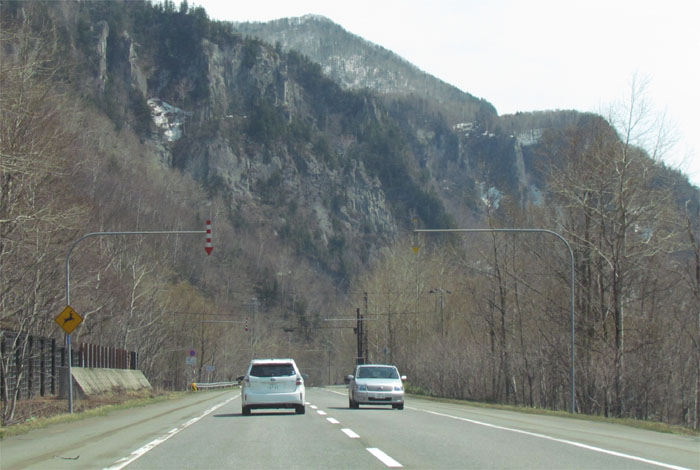 午後1時過ぎ、国道39号、「マイカー民宿」から層雲峡温泉方向