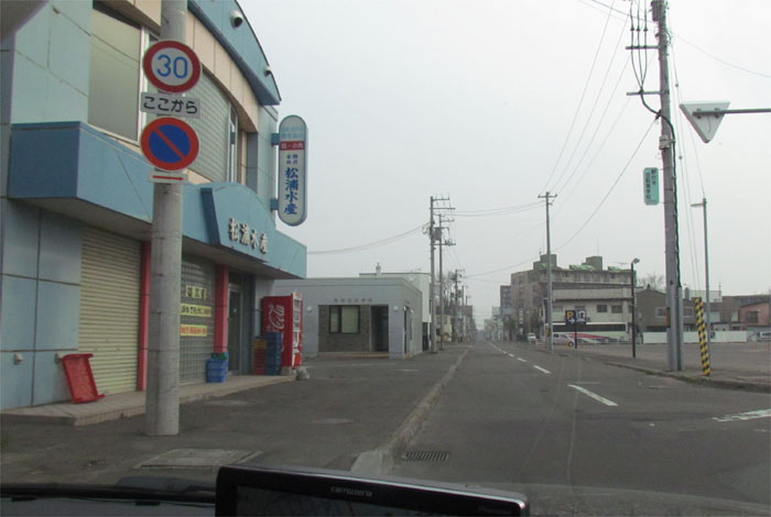 末広町の南岸通り、西4号線バス停前から野付牛自動車学校方向