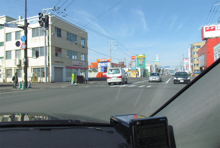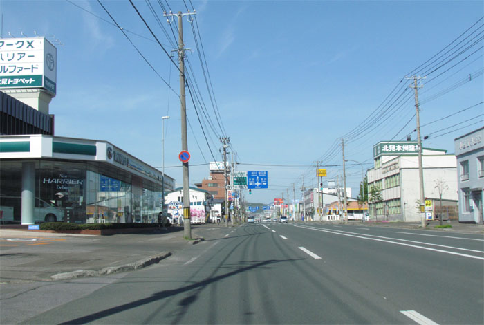 午前7時50分、北4条通りの国道39号交差点から緑園通り方向