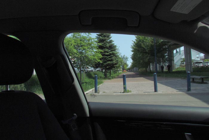 前方がJR石北本線高架橋、写真右が北見駅方向