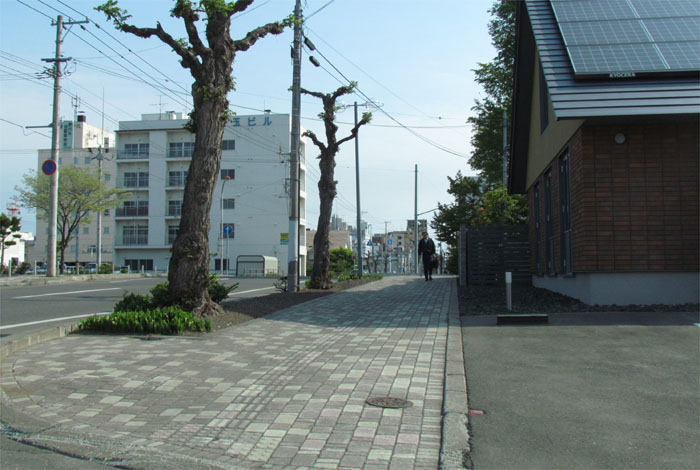 前方の街路樹の向こうが石北大通り