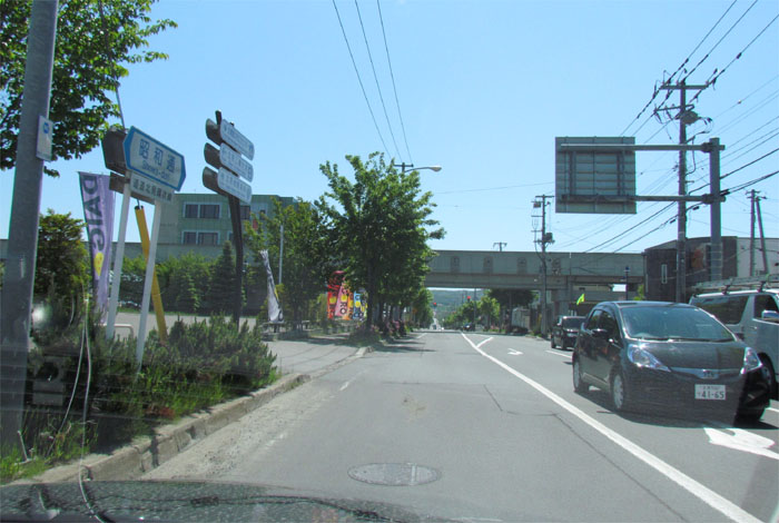 前方がJR石北本線高架橋、写真右が北見駅方向