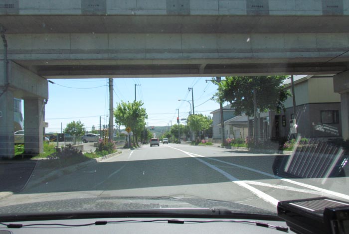 前方がJR石北本線高架橋、写真右が北見駅方向