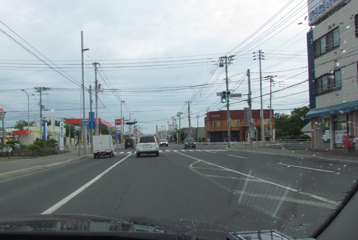 末広町の南岸通り、西4号線バス停前から野付牛自動車学校方向