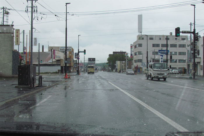 末広町の南岸通り、西4号線バス停前から野付牛自動車学校方向